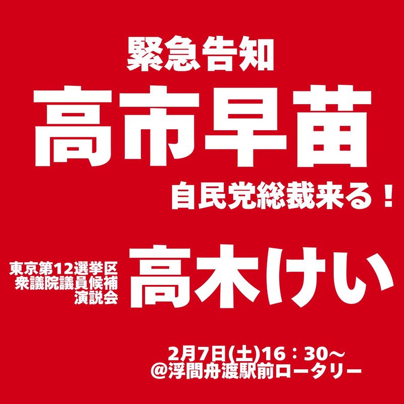 ホーム>政党・政治家>高木 けい (タカギ ケイ)>高木けい【東京12区/北区・板橋区】『高市早苗来たる❗️』衆議院選挙・総選挙東京12区の未来を...