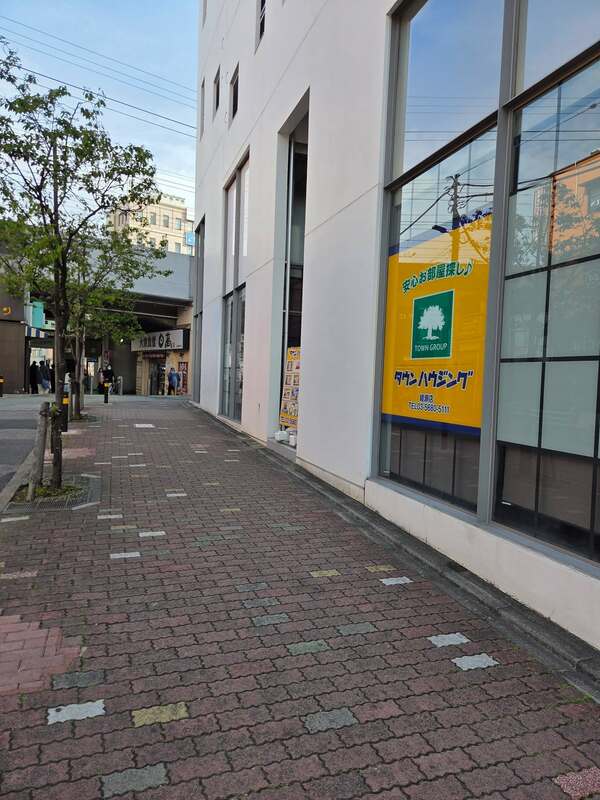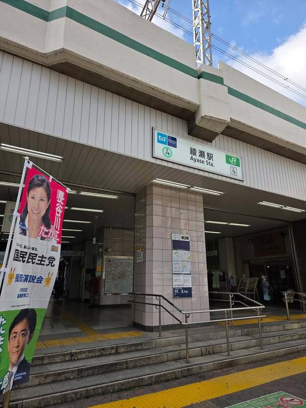 綾瀬一丁目において、綾瀬駅西口を出てすぐの白壁の脇に、「のぼりポールスタンド(水入り)」が無造作に置かれている箇所を確認しました。当該スタンドは足元付近に設置されており、視覚障がいのある方、とりわけ全盲の方にとっては認識が難しく、つまずきの危険がある状況でした。