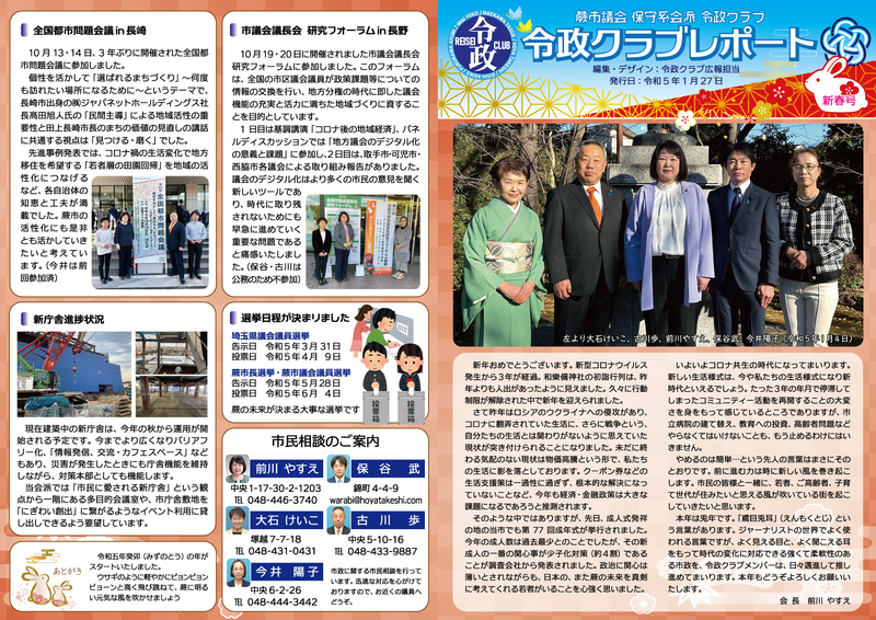 ホーム>政党・政治家>古川 歩 (フルカワ アユミ)>蕨市議会で古川が所属している保守系無所属会派「令政クラブ」の広報レポートが出来ました。