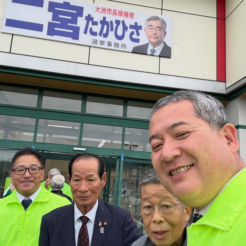 大洲市長選挙2026が本日告示され二宮たかひさ候補も無事立候補です 中村時広愛媛県知事のスピ...