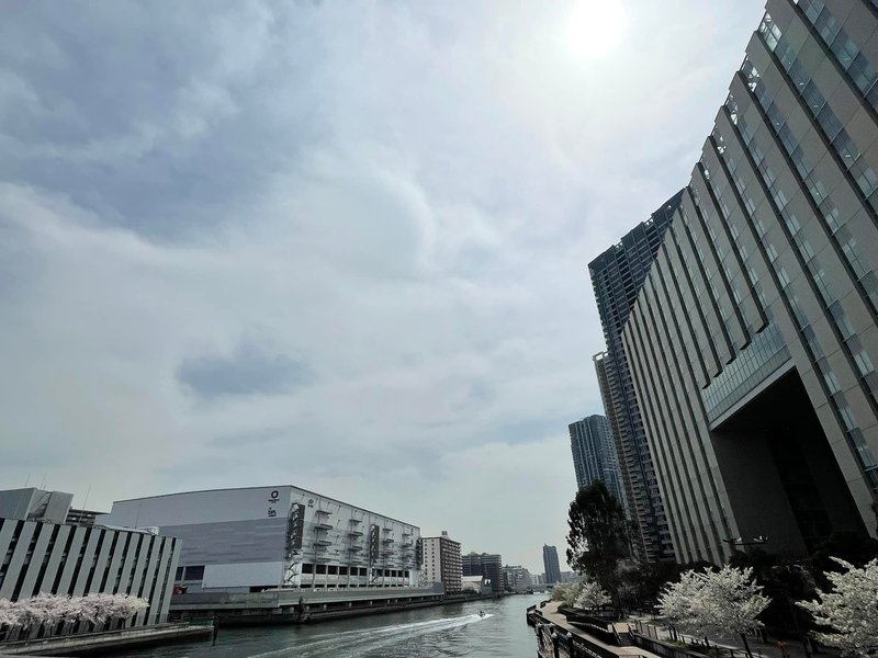 コミュニティサイクルで豊洲運河のきれいな桜🌸を見ながらサイクリング🚴♀️して、お昼前に議会で退任移動される区の幹部職員の方ともご挨拶し、締め作業や打ち合わせなど。