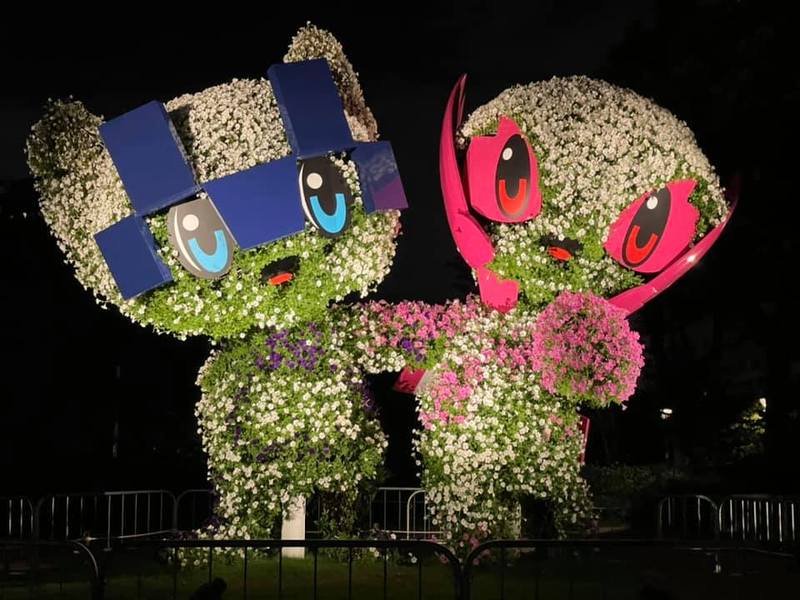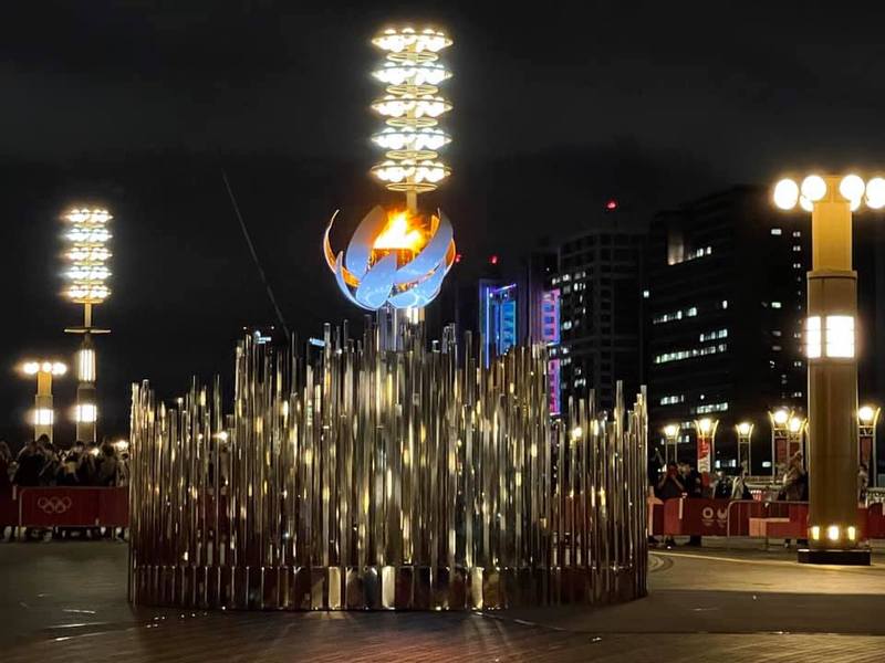 有明アリーナや聖火台、シンボルプロムナード公演の聖火台。