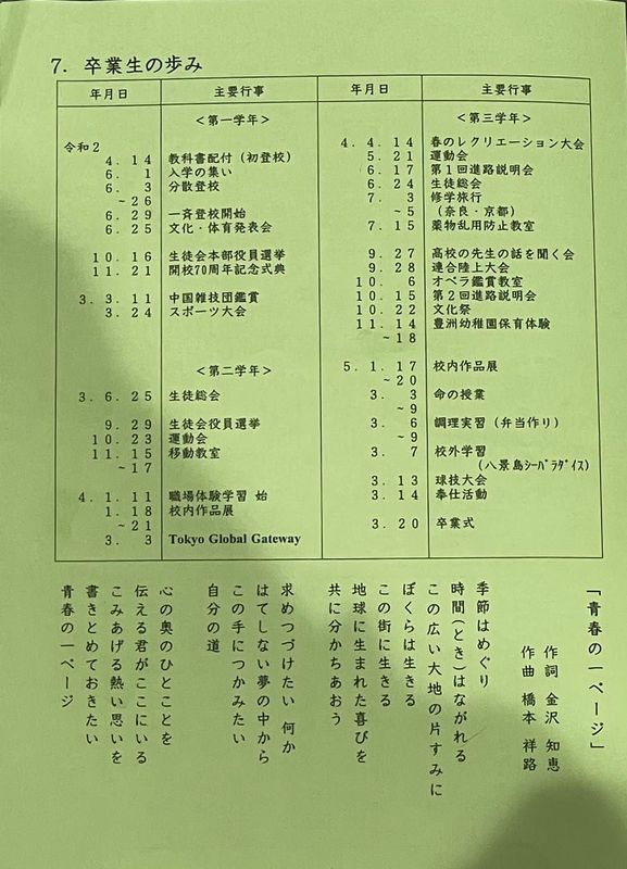 卒業生、在校生はマスクなしで式典に参加し、合唱などもありました。
