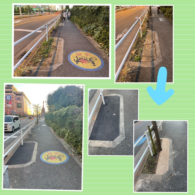 新砂三丁目の高齢者医療センターに向かう歩道について、以前道幅が狭いので広げてほしいとの要望があり、植栽マスの半分部分に透水性のものを載せていただき、改善致しました。