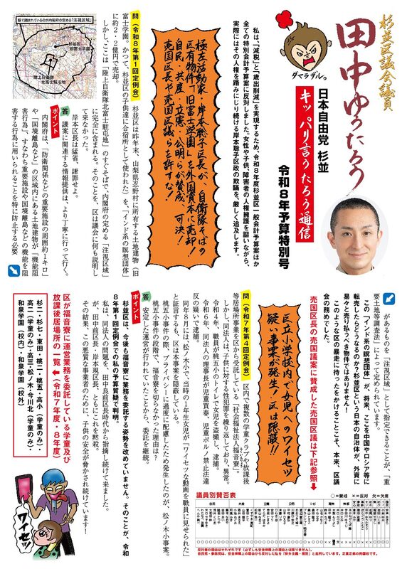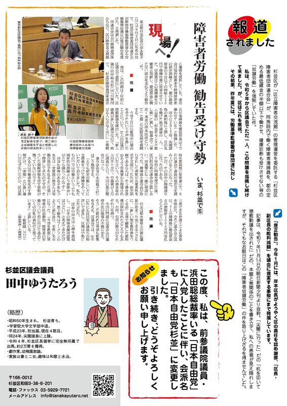 ホーム>政党・政治家>田中 ゆうたろう (タナカ ユウタロウ)>【キッパリゆうたろう通信最新号ができました!】現在、お配りしています。