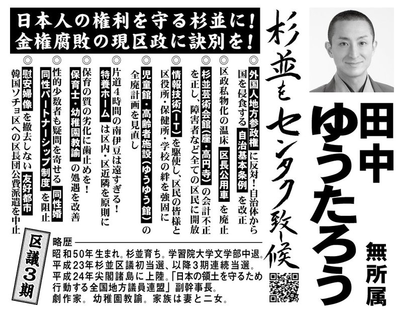 ホーム>政党・政治家>田中 ゆうたろう (タナカ ユウタロウ)>#杉並区長選挙の#選挙公報です。