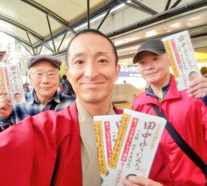 午後は、荻窪駅北口にて街頭演説。 応援団の力も借りて、今日も沢山受け取って頂けました。