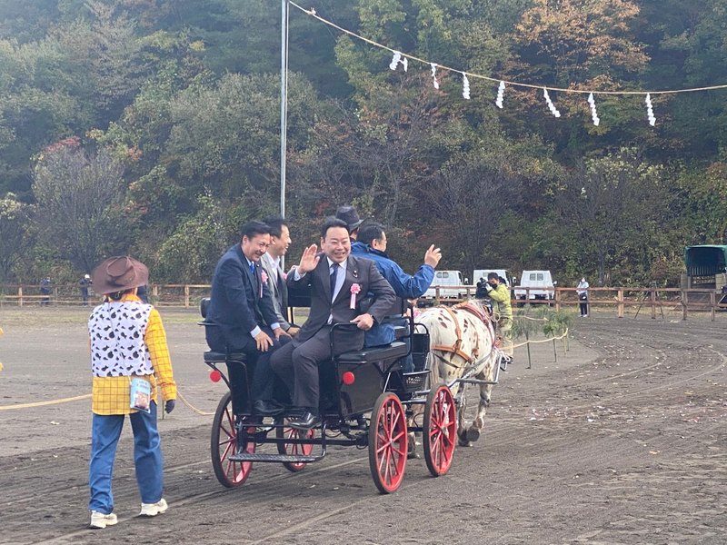 開会に伴い式典でご挨拶、そして馬車にも乗せていただきました。また、地域内外からお集まりの出店ブースも拝見させていただきました!