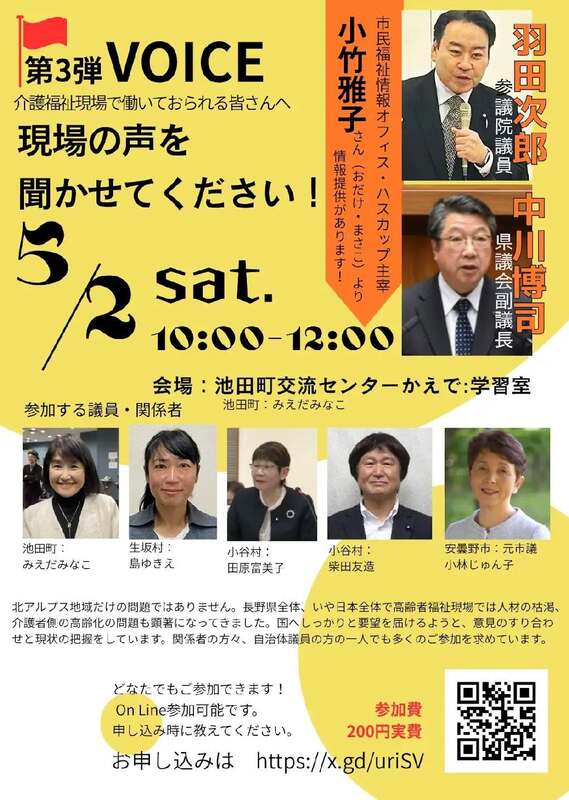 ホーム>政党・政治家>羽田 次郎 (ハタ ジロウ)>【5月2日意見交換会のお知らせ】池田町に伺います。