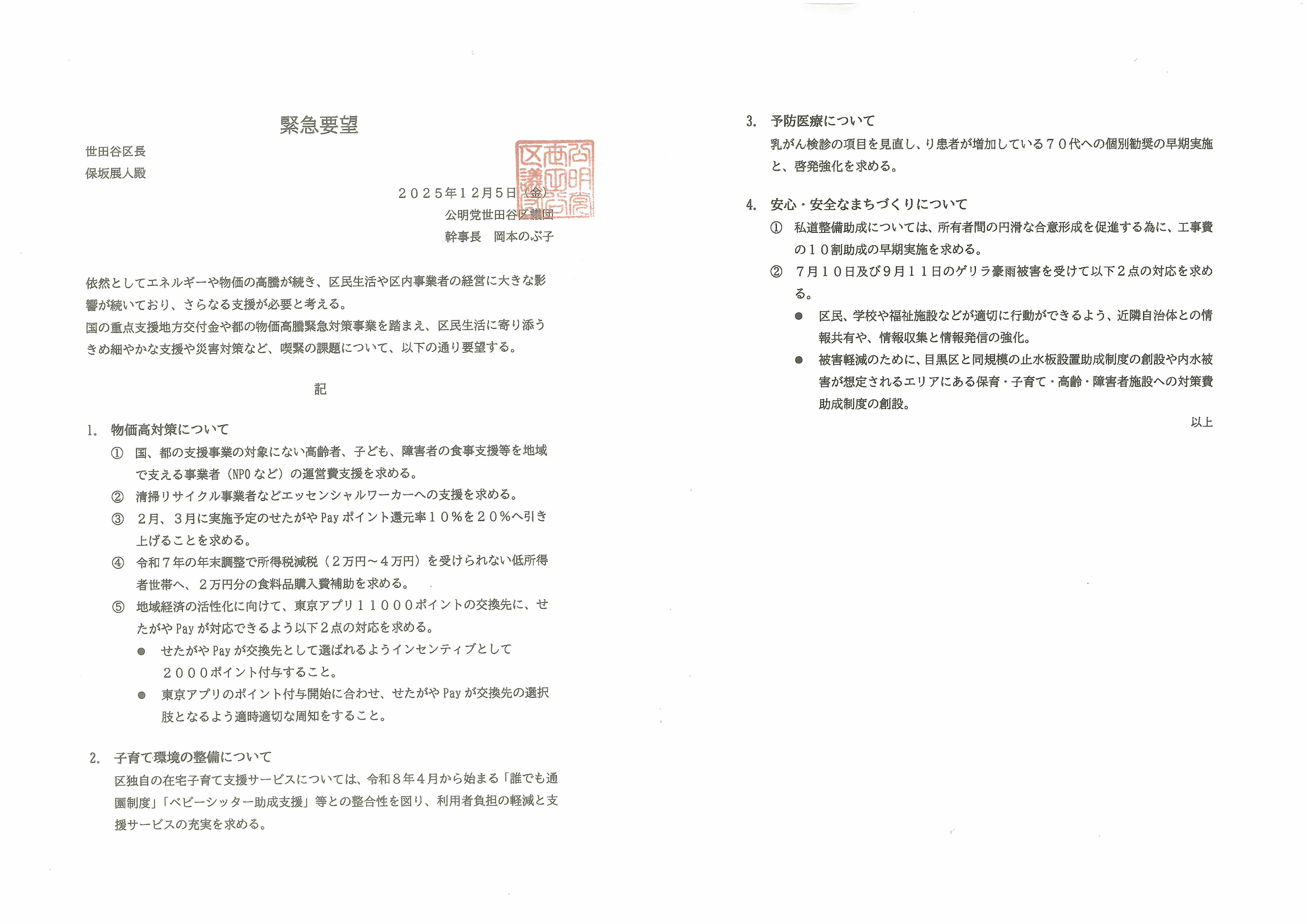 世田谷区長へ緊急要望を行いました。