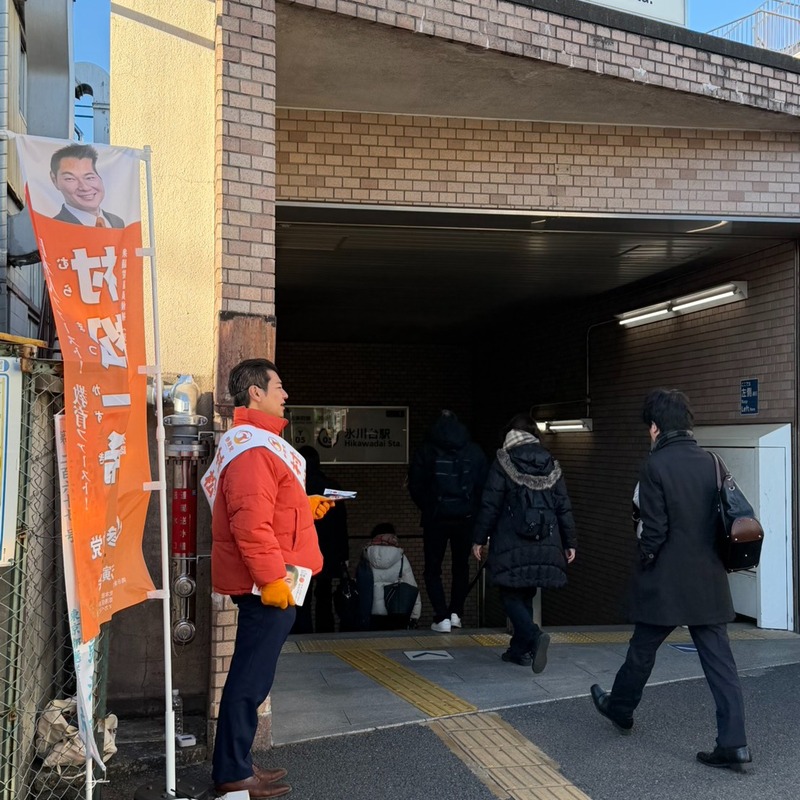 今日は一日、氷川台駅前・周辺にて、皆様に私の想いを訴えさせていただきます。