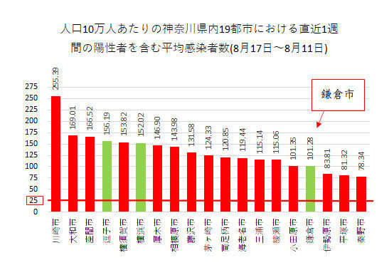 ホーム>政党・政治家>岡田 かずのり (オカダ カズノリ)>8月17日までの人口10万人当たりの一週間における神奈川県内19都市の新型コロナウイルス陽性者...