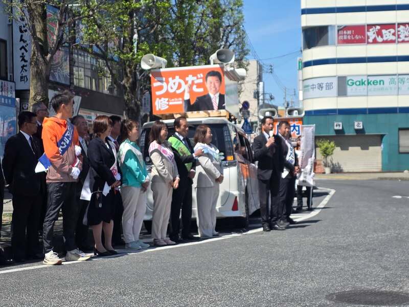 長年の友人である久喜市の梅田修一市長候補(現職)の応援に来ました。久喜市では同時に市議選も行われます。 三ツ林代議士、近隣の首長、県議も勢揃い!絶対に負けられない戦いです。久喜市のみなさん、よろしくお願いいたします🙇