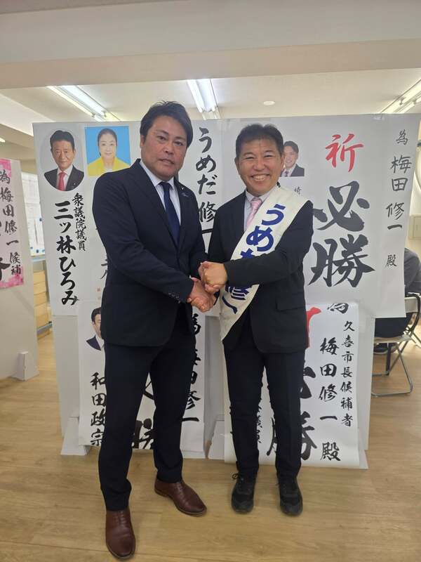 ホーム>政党・政治家>森 いくま (モリ イクマ)>長年の友人である久喜市の梅田修一市長候補(現職)の応援に来ました。