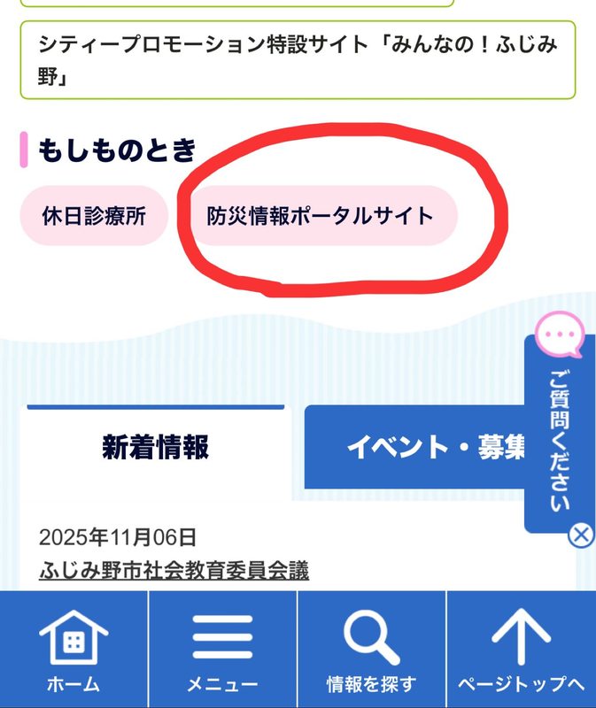 災害時のふじみ野市の情報は、市の公式サイト内の「防災情報ポータルサイト」に一元化されています