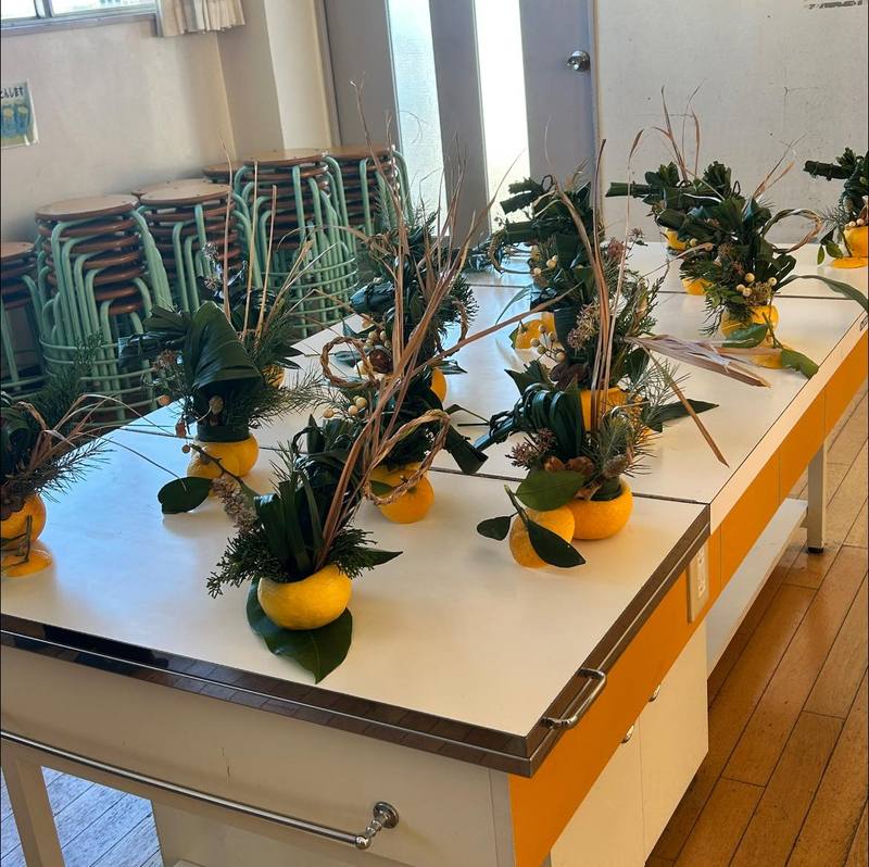 校庭の植物を集めて、お正月のお飾りを作りました