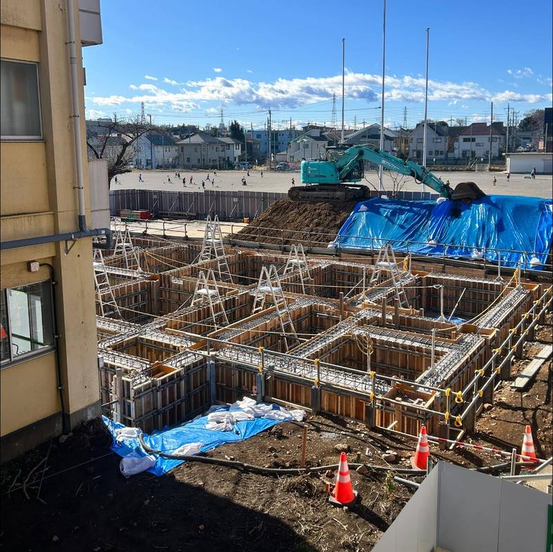 建て替えが進められている校舎の増築部分は基礎ができていました