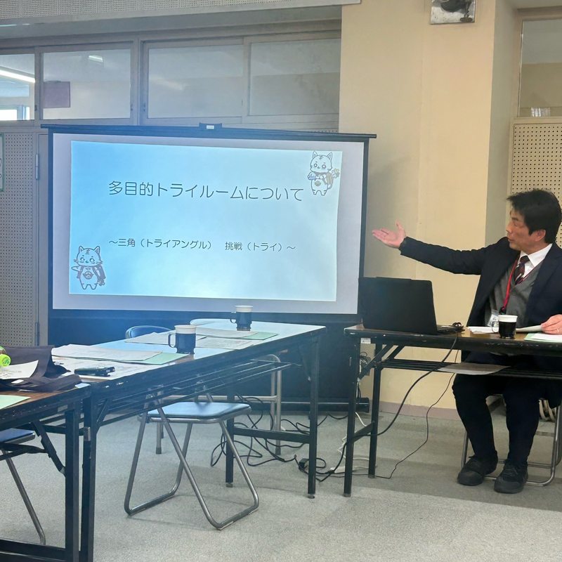 先日、市議会の総務教育常任委員会で、三角小学校の「トライルーム」を視察しました。