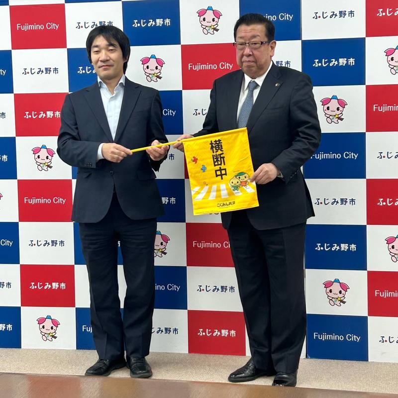 こくみん共済 coopからふじみ野市へ200本の横断旗を寄贈してもらいました