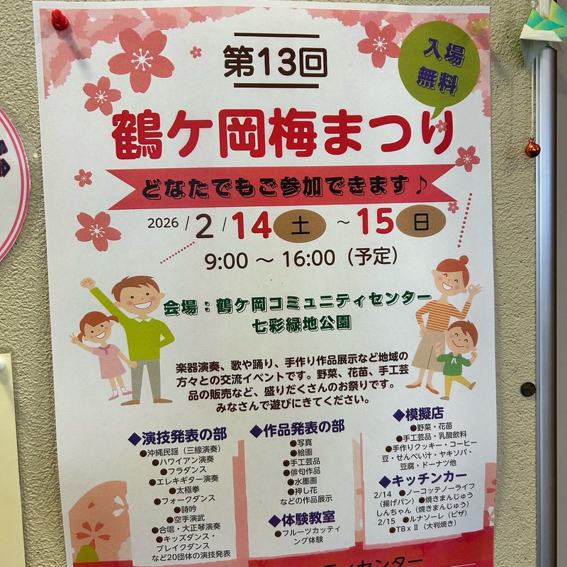 週末は鶴ケ岡コミュニティセンターの「梅まつり」に