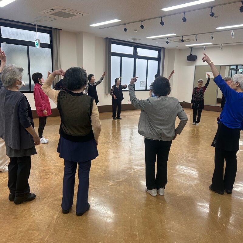一人で踊るものや、社交ダンスとフォークダンスを組み合わせたような振り付けのものもあり、1時間半ほどご一緒させてもらいました