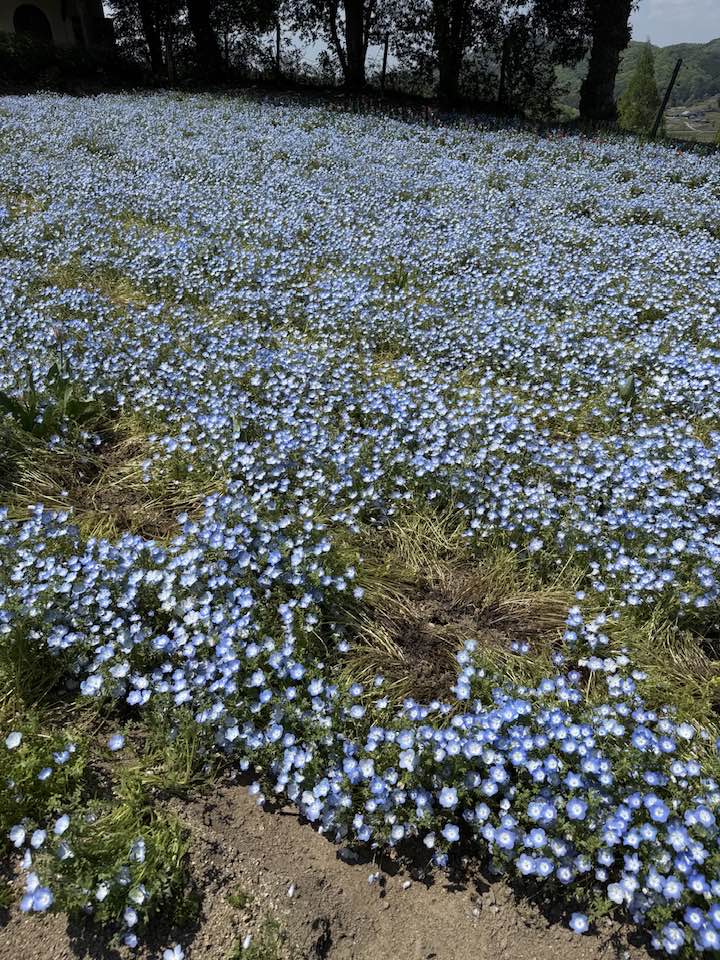 赤磐市に行く用事があったので、ネモフィラの見頃だと聞き、ドイツの森に行ってみました。素晴らしい景色で癒されました。