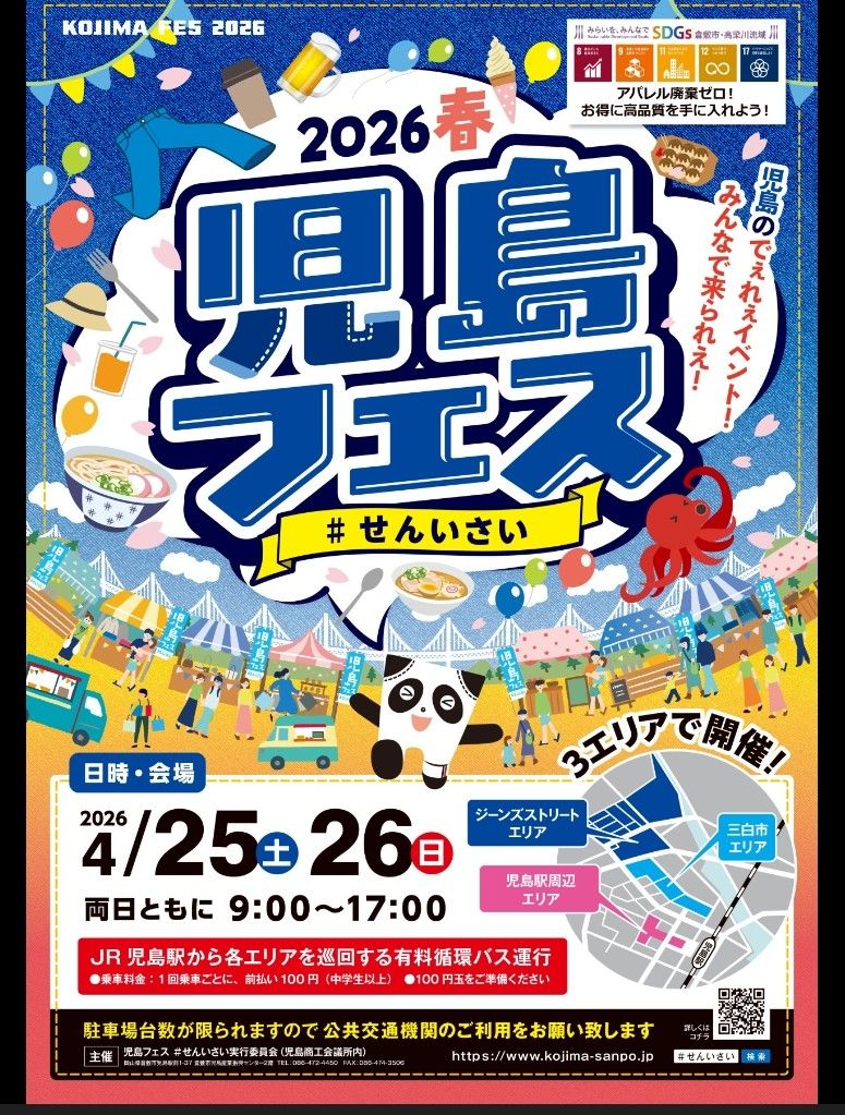 ③4月25日(土)~4月26日(日)に児島駅周辺で2026春児島フェス#せんいさいが開催