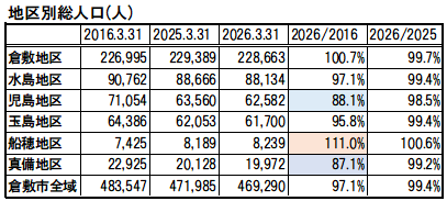【倉敷市の人口動向(2026年3月末)】地区別に見える“まちの変化”とこれからの課題