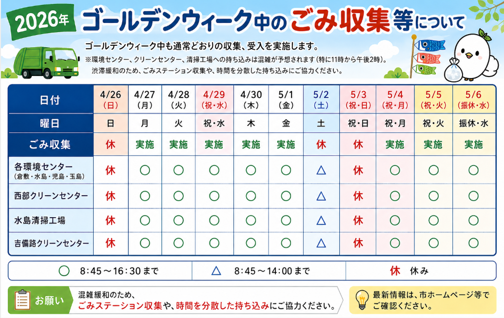 ホーム>政党・政治家>さいとう 武次郎 (サイトウ タケジロウ)>GWのごみ回収は?【倉敷市議会議員】2026.4.26