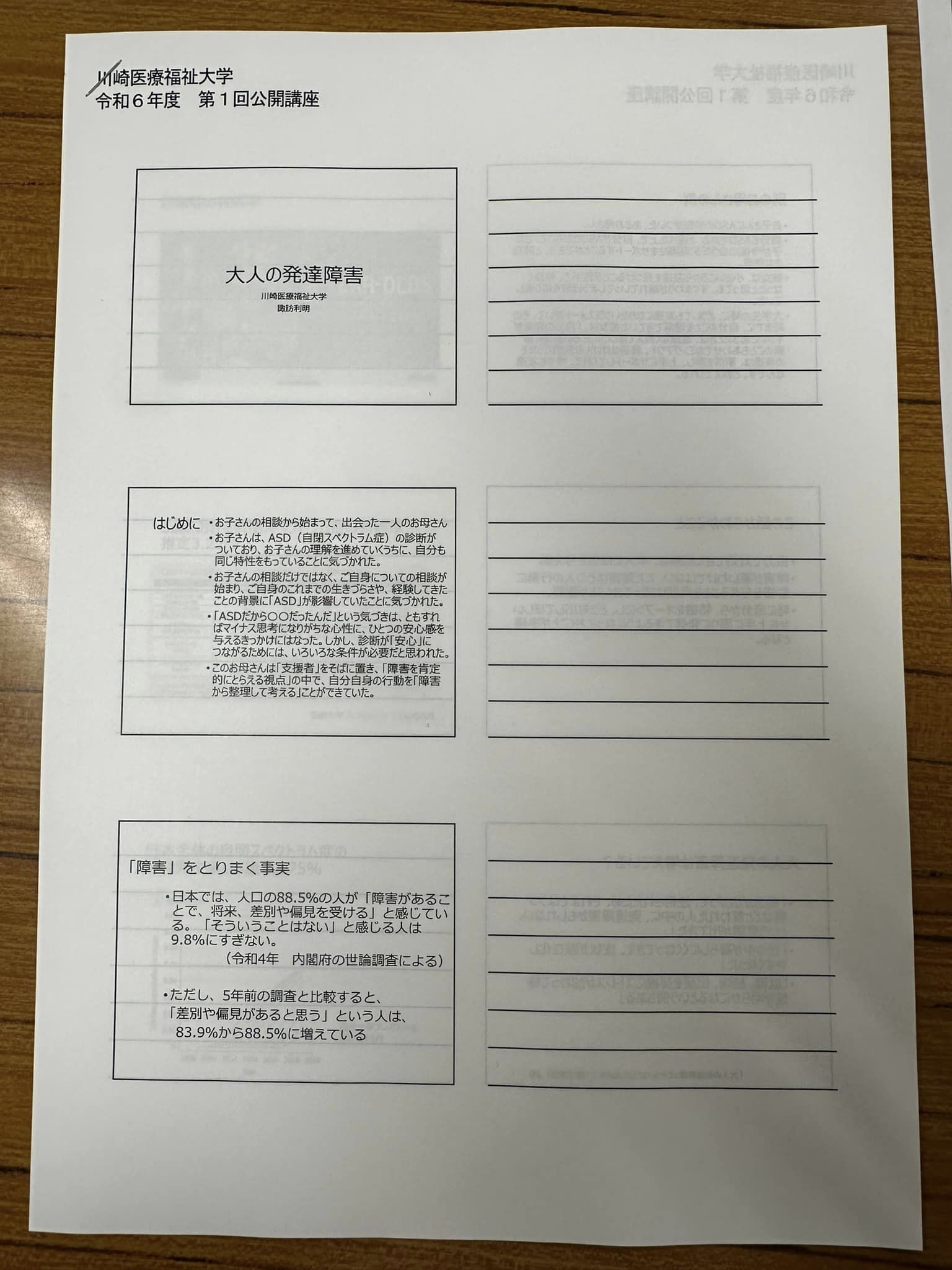 ホーム>政党・政治家>さいとう 武次郎 (サイトウ タケジロウ)>とても勉強になった川崎医療福祉大学公開講座「大人の発達障害」【倉敷市議会議員】2024.5.25