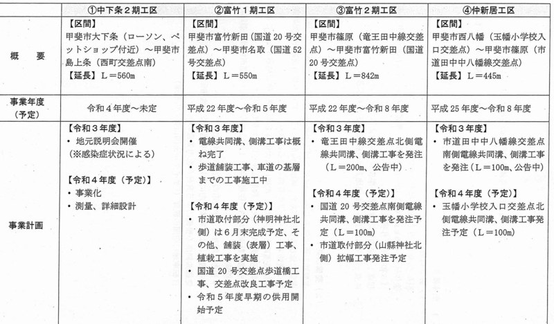 甲斐市内の主要幹線道路のなかでも、非常に重要な路線であり、市民生活の向上においてもとても付加価値の高い道路であります。関係各所に要望し早期完成を訴えていきたいと思います。