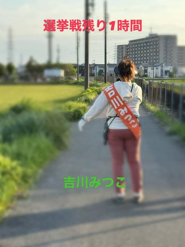 ホーム>政党・政治家>吉川 みつこ (ヨシカワ ミツコ)>皆さま、夜分に大きなマイクでご迷惑をおかけしています吉川みつこです選挙戦残り1時間、まだまだ皆...