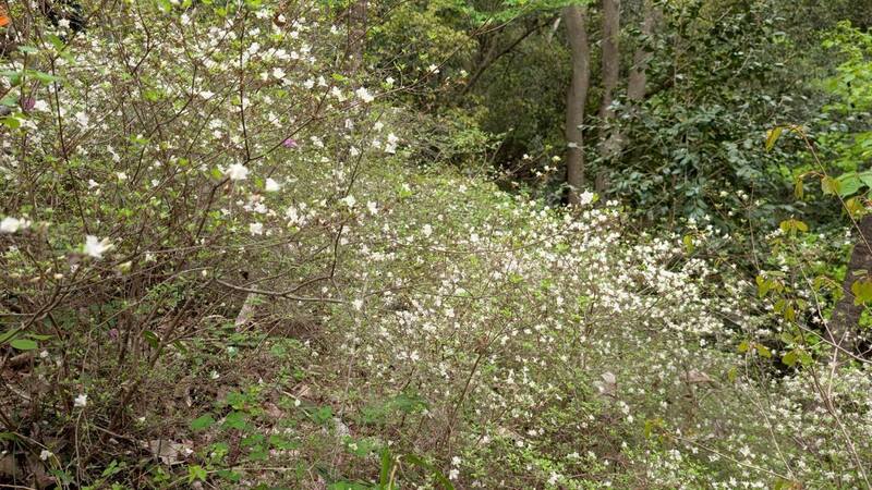 本日は、シロバナウンゼンツツジが見頃を迎えている「虫生(むしゅう)の森」を訪問しました。