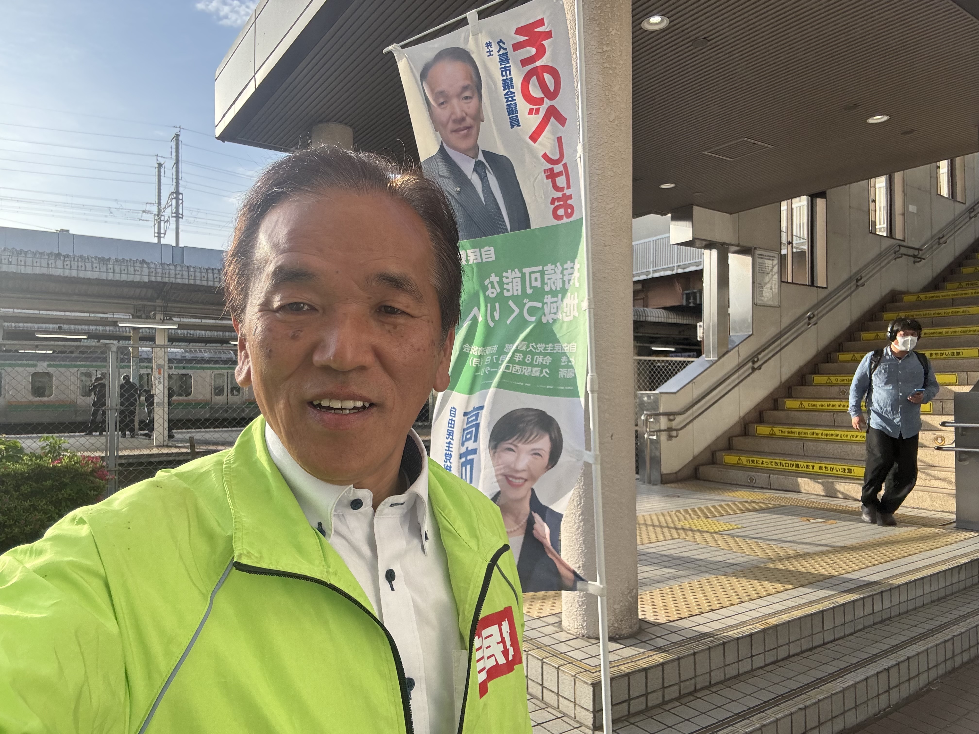 選挙終了から2日目の朝、久喜駅西口(交番側)にて、当選のご報告とご挨拶をさせていただきました。
