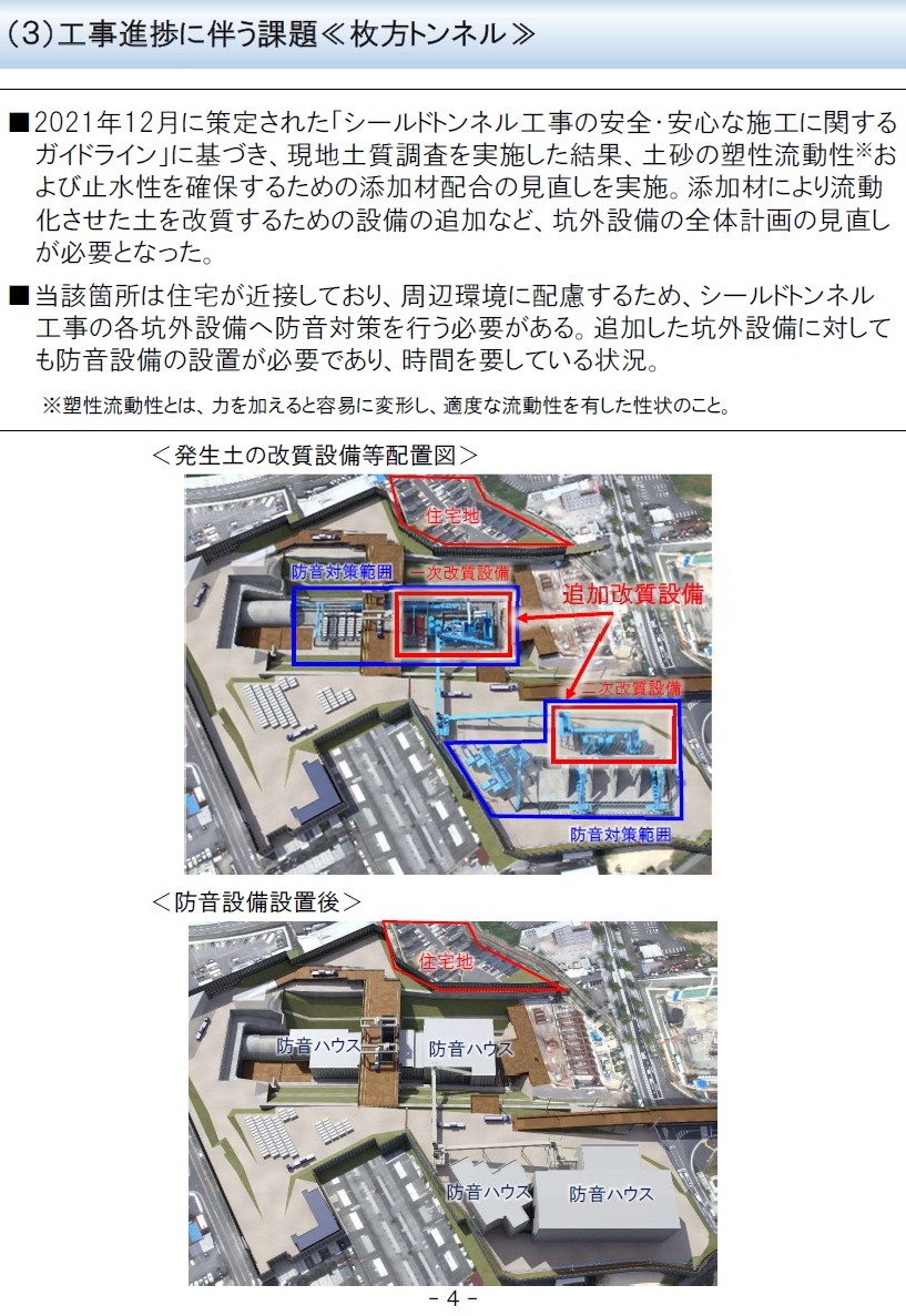 ただ、枚方トンネルは住宅地の真下を通る大規模工事です。