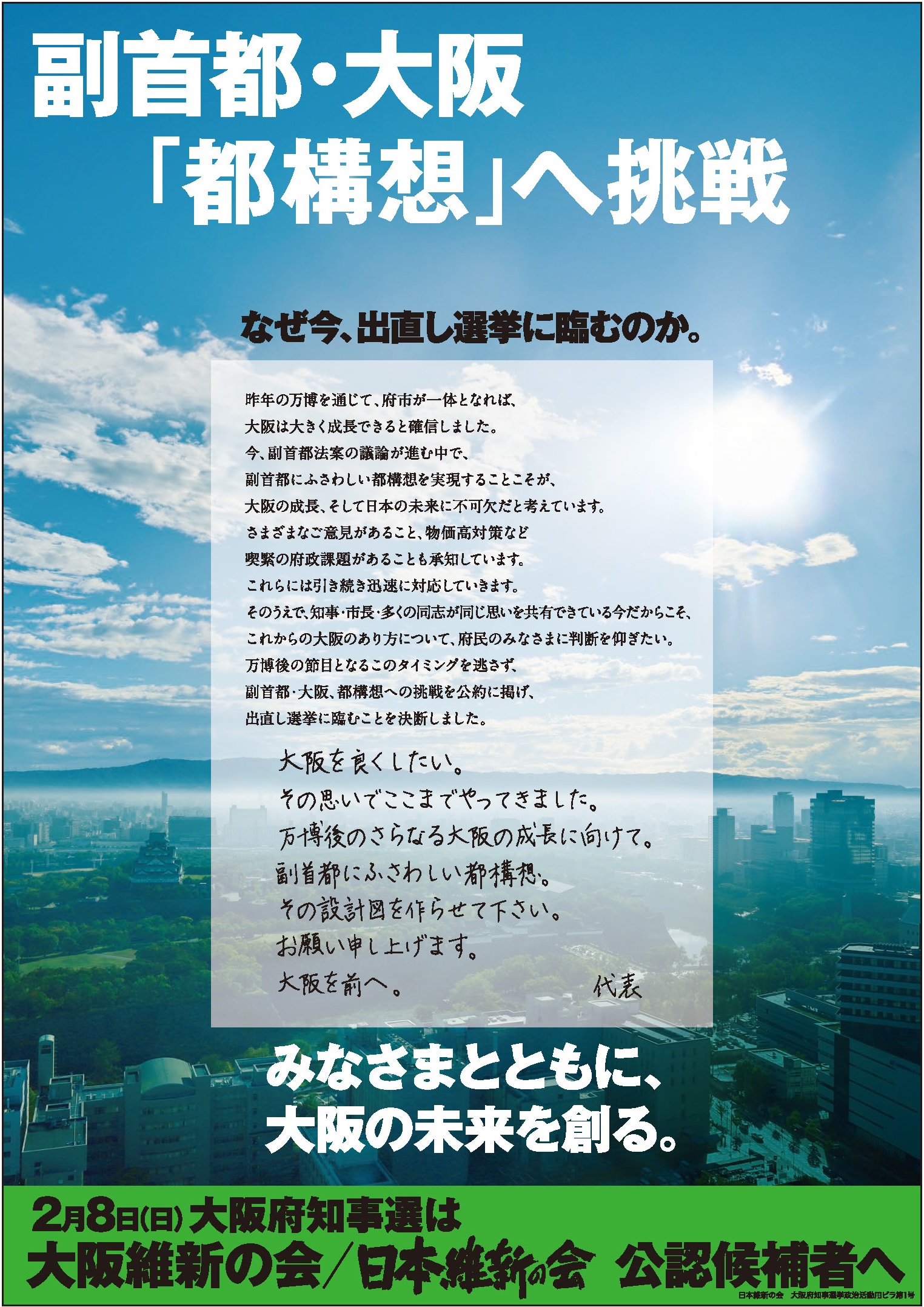 私も大阪の未来、そして枚方市の未来のために、
