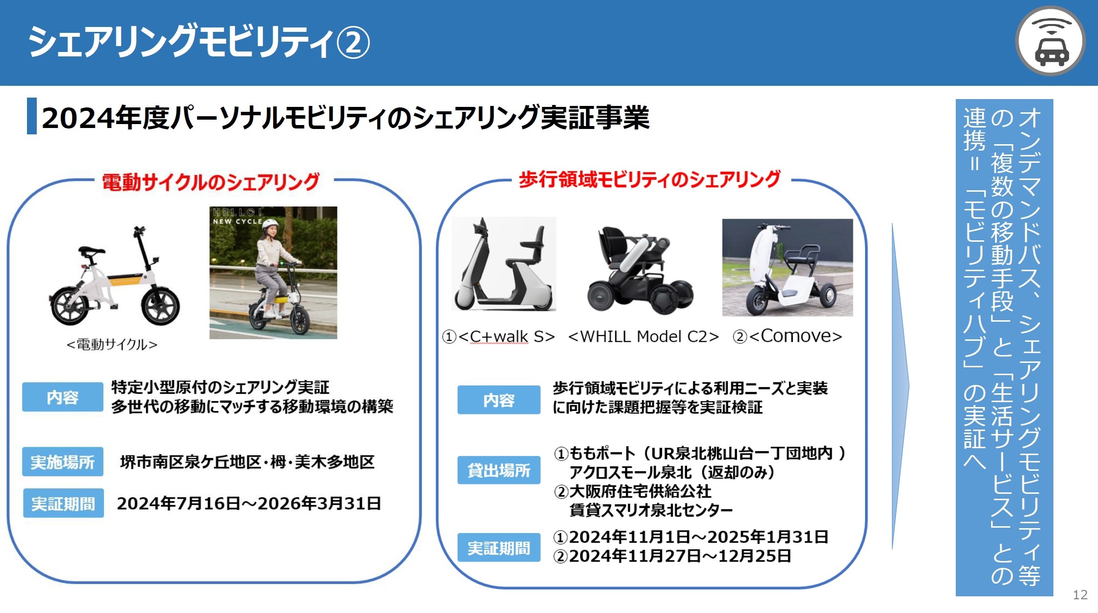 パーソナルモビリティのシェアリング実証事業など、