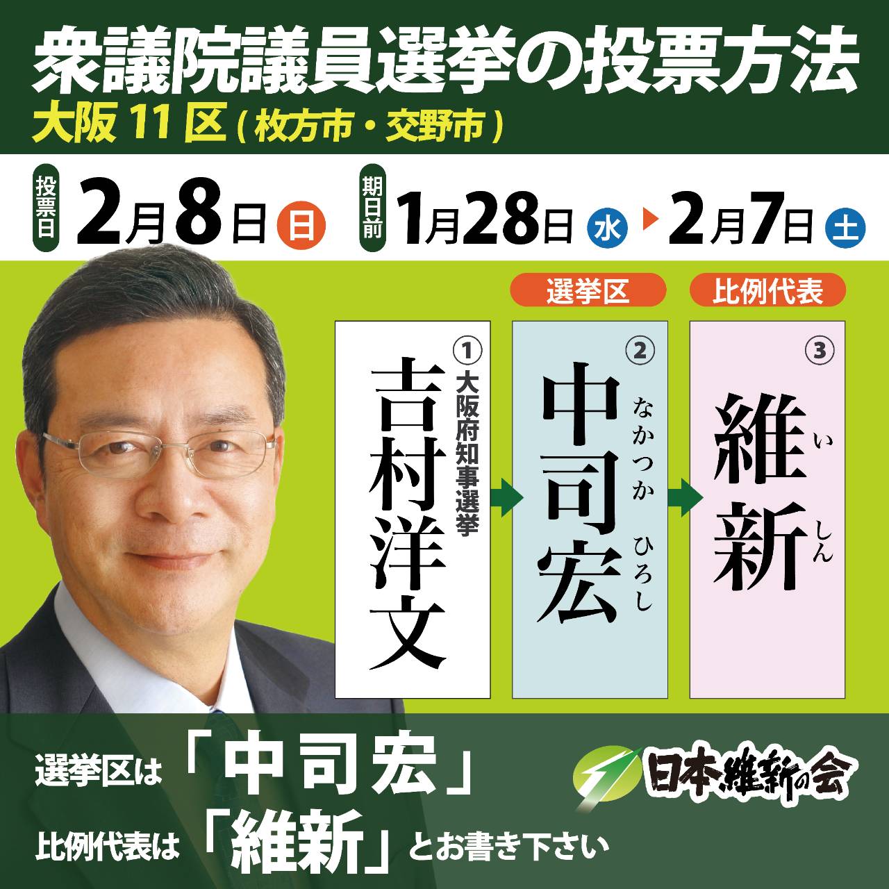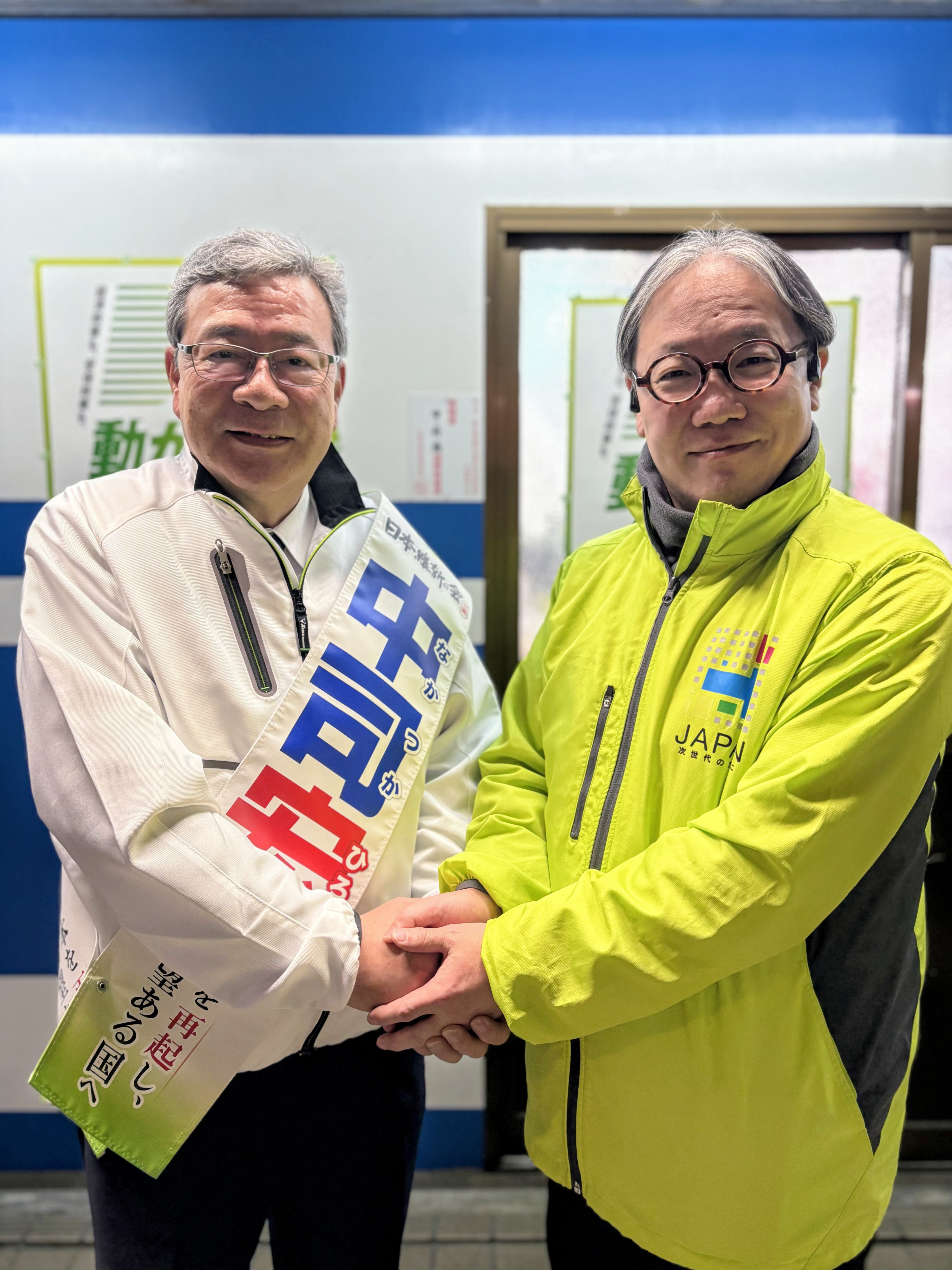 ホーム>政党・政治家>かじや 知宏 (カジヤ トモヒロ)>【衆院選2026】枚方・交野から日本を動かす|大阪11区は中司宏候補へ、比例は維新へ|明日が投票日