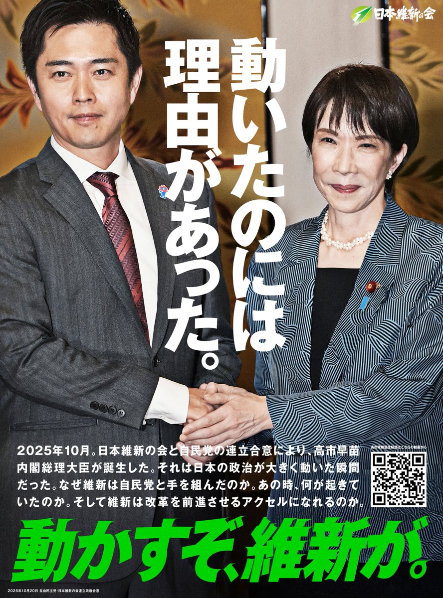 昨年10月、日本維新の会が自民党と連立を組み、高市内閣が発足しました。