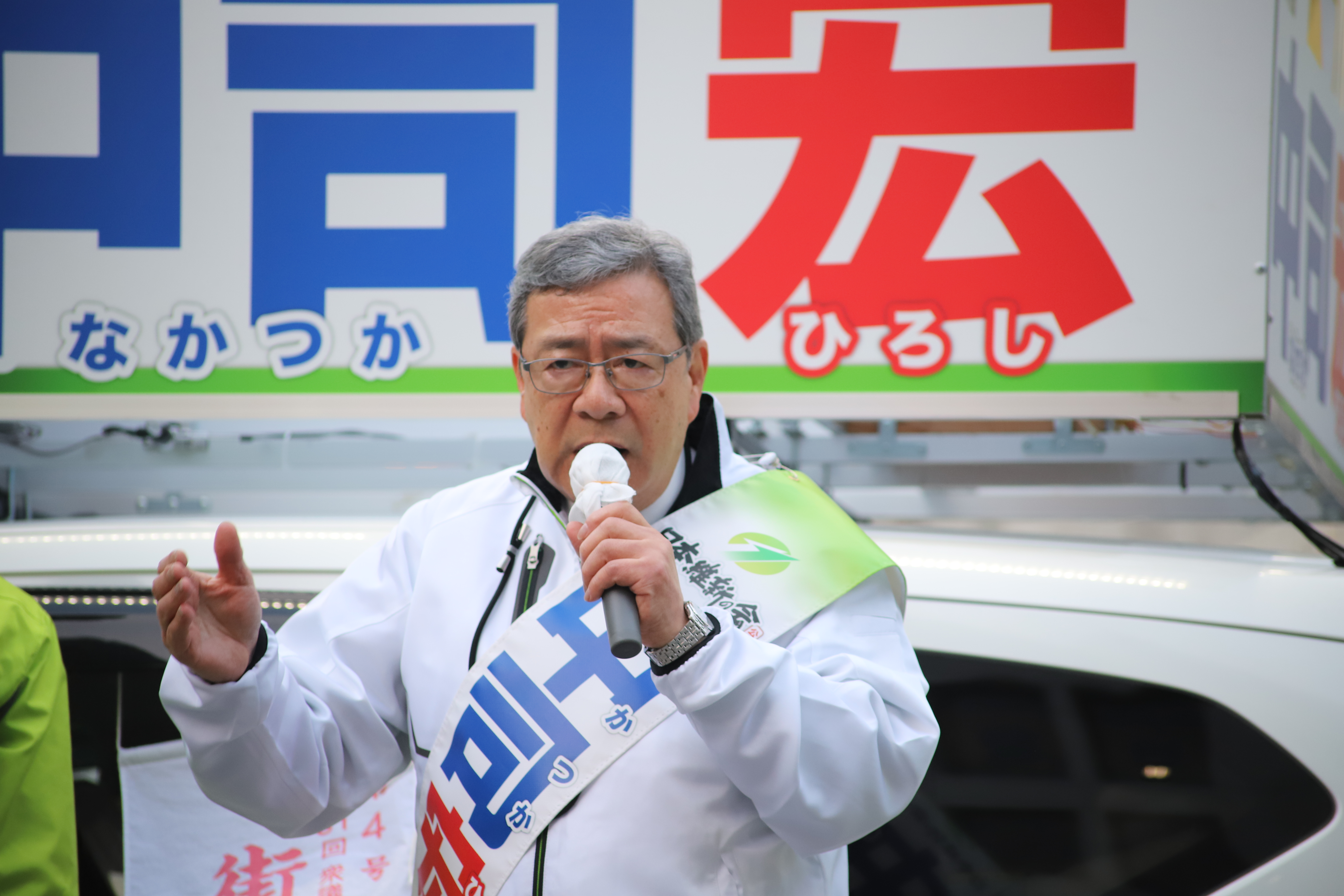 そして本日、中司宏候補は17時から枚方市駅南口ロータリーで最後の訴えを行いました。