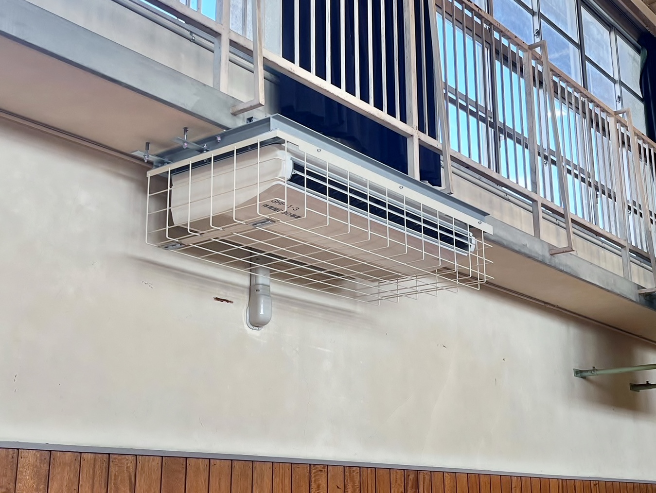 実際に体育館で空調機器を運転した状態で見学をさせてもらいましたが、非常に温かく快適な環境でした。