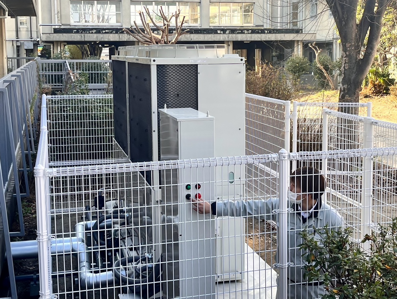 今回導入される空調設備は、都市ガス方式のガスヒートポンプエアコン(GHP)を採用し、室内機は天吊型で体育館に14.0kw×8台、室外機は56.0kw×2台が設置されます(第三中学校と第四中学校は室内機12台、室外機3台)。
