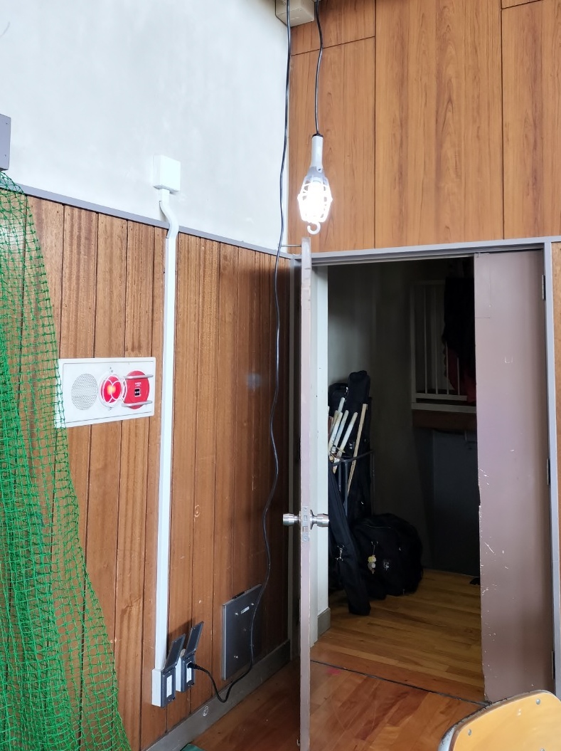 さらに、1次避難所となっている小学校体育館では、発電した電力を分電盤に送ることで、体育館で使用しているLED照明やコンセントの一部も使用できるようになっています。