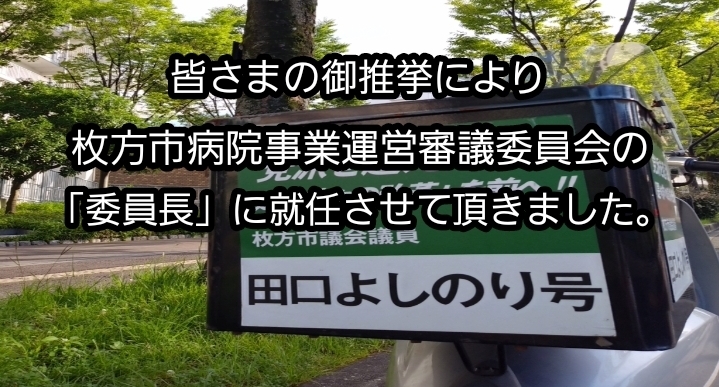 ホーム>政党・政治家>田口 よしのり (タグチ ヨシノリ)>委員長に就任させて頂きました~枚方市病院事業運営審議委員会。