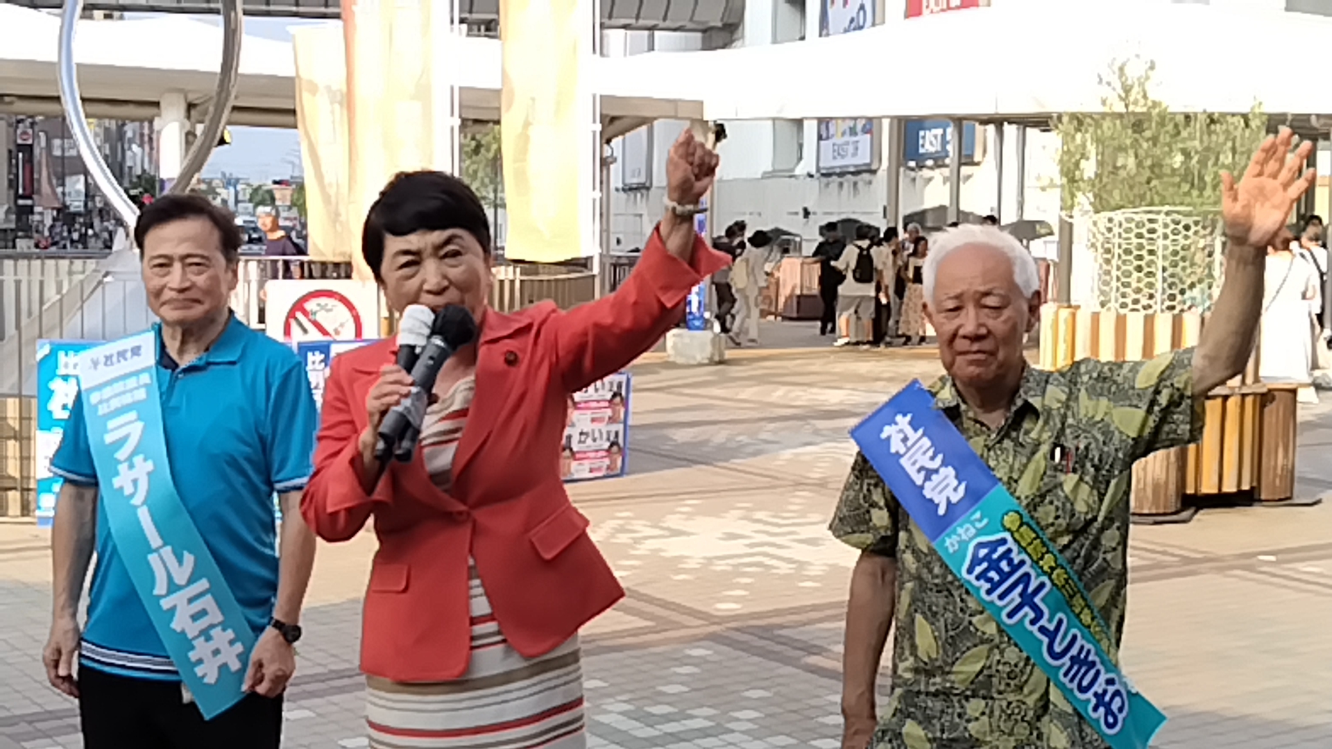 ■金子ときお候補 福島みずほ社民党党首、ラサール石井候補と共同行動(福島みずほ社民党党首の映像)