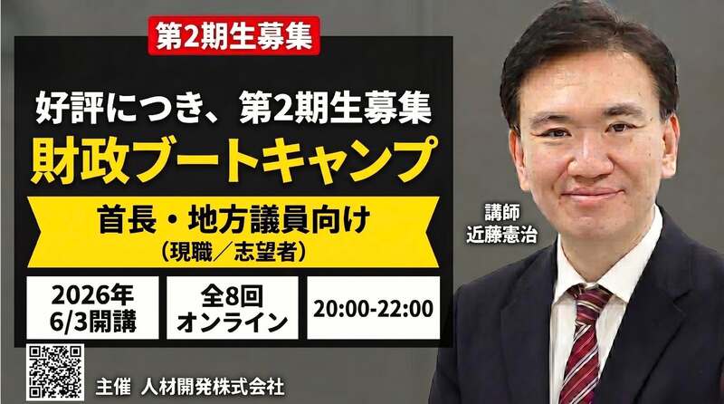 好評につき第2期生募集開始!首長・地方議員(現職/志望者)のための実践型プログラム。全8回オンライン・10名限定で、2026年6月3日に開講します。
