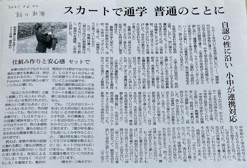 福岡県の公立中学校に通う生徒(13歳)の性別違和に関する内容だった。