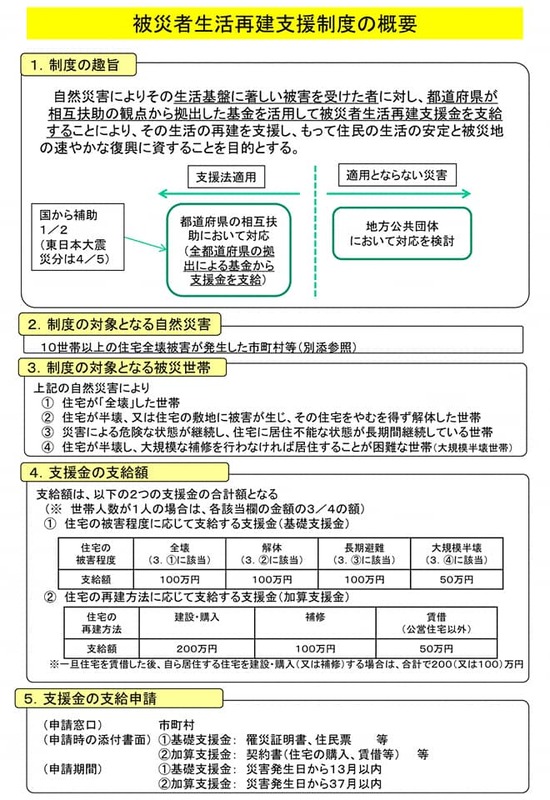 全壊の場合最大300万円が支給されます。