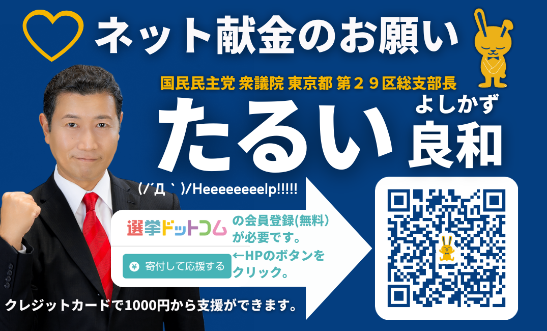 SNSでの拡散:たるい良和のメッセージを多くの人に届けるために、SNSでの情報拡散にご協力ください。ハッシュタグ #たるい良和 #東京29区 をつけて、私たちの活動をシェアしていただけると幸いです。