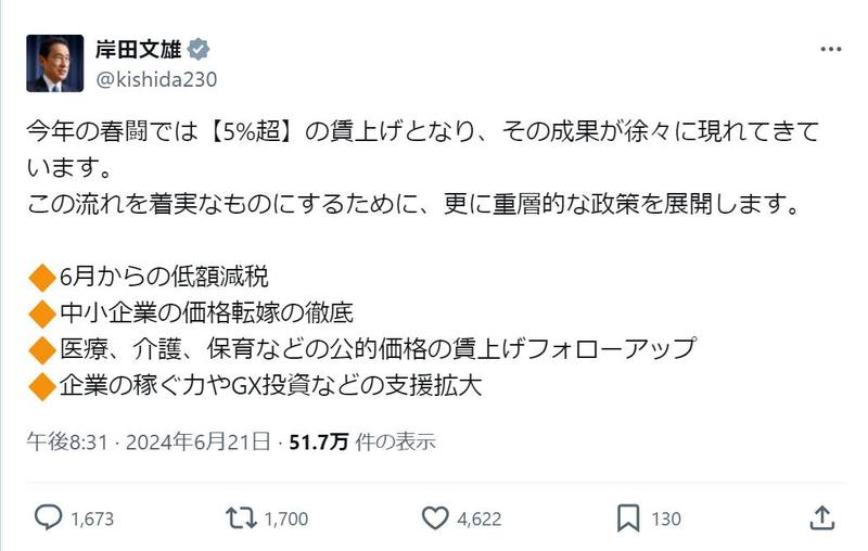 2.「低額減税」と減税が「低額」である反省を明らかにしていることは素直でいい。このポストで唯一ほめることができる点だ。